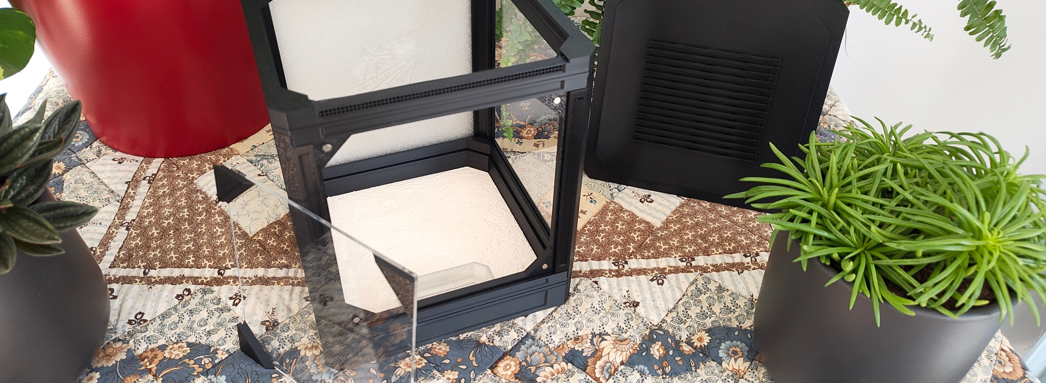 Viva est un terrarium modulaire pour insectes et invertébrés, conçu pour offrir un habitat propre, lisible et évolutif.